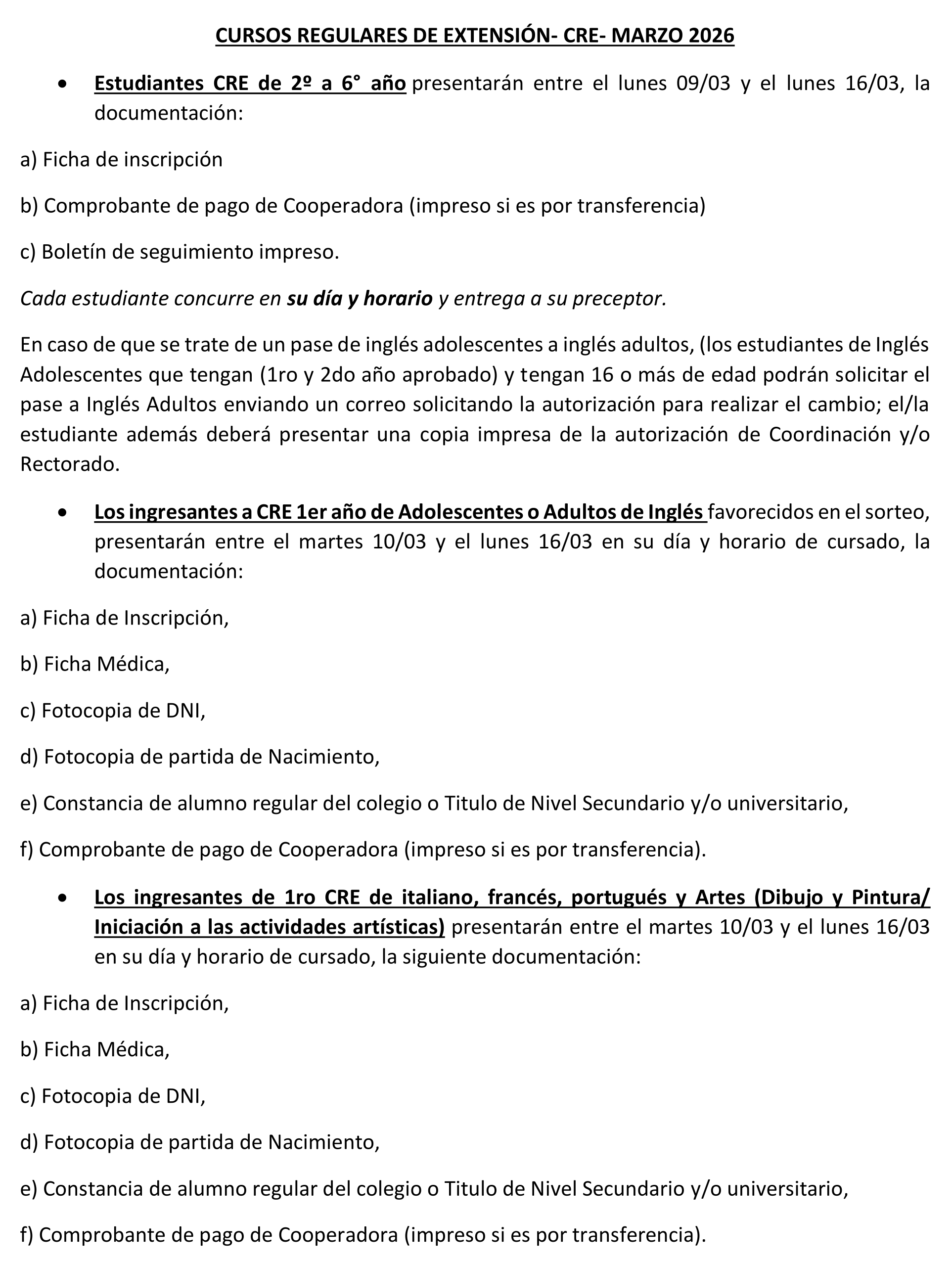 Cursos Regulares